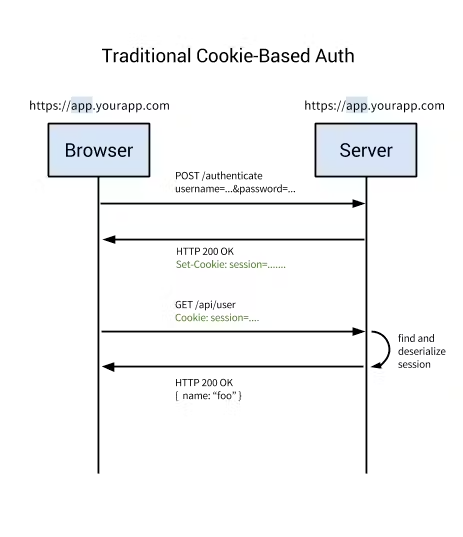 The server needs to keep track of active sessions in a database or memory, while a cookie is created on the front end that holds a session identifier. This is why it’s called cookie-based authentication.