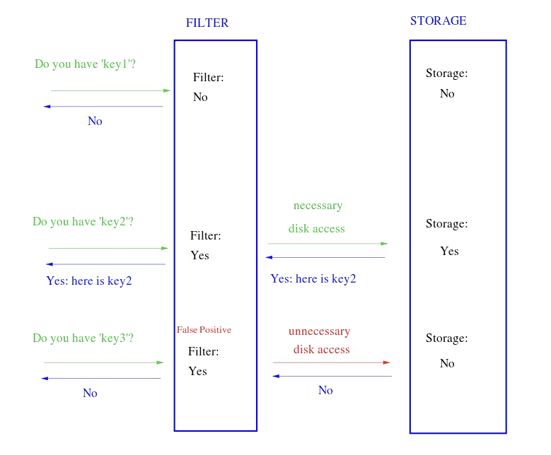 Also, consider that if your bloom filters false positive rate is 1% (we will talk about the error rate in detail later), that means among the costly round-trips to the server or the disk, only 1% of the query will be returned with false results. The other 99% won’t go in vain.