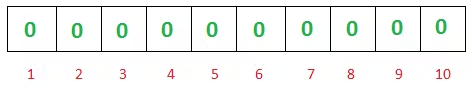 The bloom filter essentially consists of a bit-vector or bit-list (a list containing only either 0 or 1-bit value) of length m. Initially, all values are set to zero, as shown below.